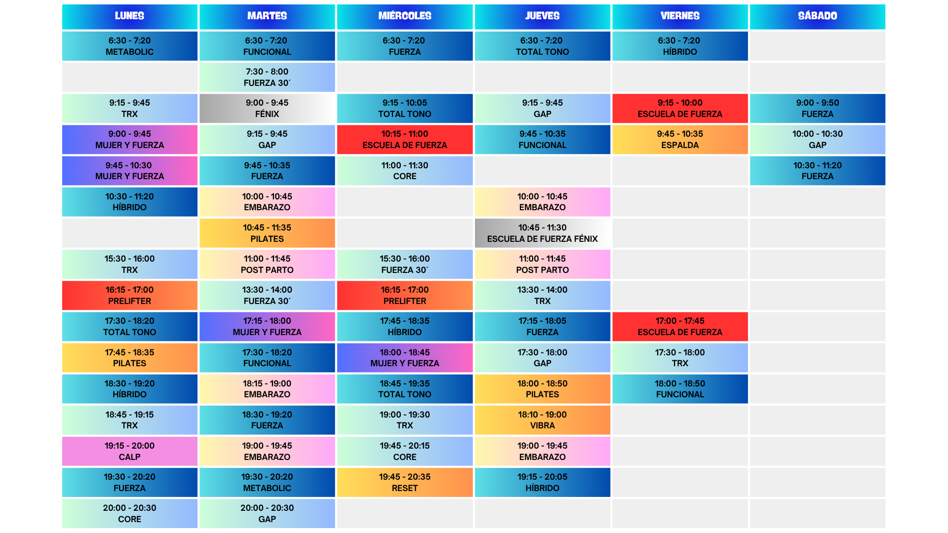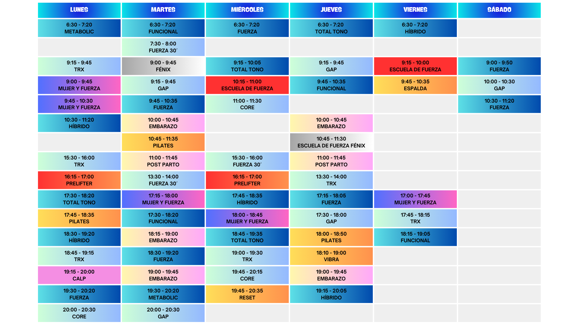 Clases colectivas, Open Gym, entrenamientos personales y más para todos los niveles.